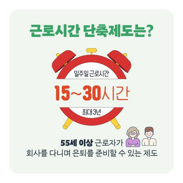 특히 55세 이상 근로자분들, 혹은 가족돌봄·학업·건강 등 다양한 이유로 근로시간 조정이 필요하다면