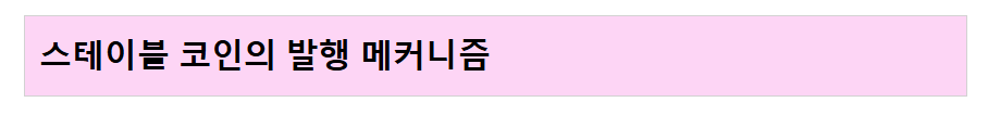 - 1코인 = 1달러 등, 법정화폐와 가치가 같도록 설계