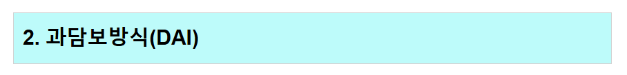 | 과담보형 | 암호화폐를 많이 맡기고 적게 코인 발행 (안정성 확보) |
