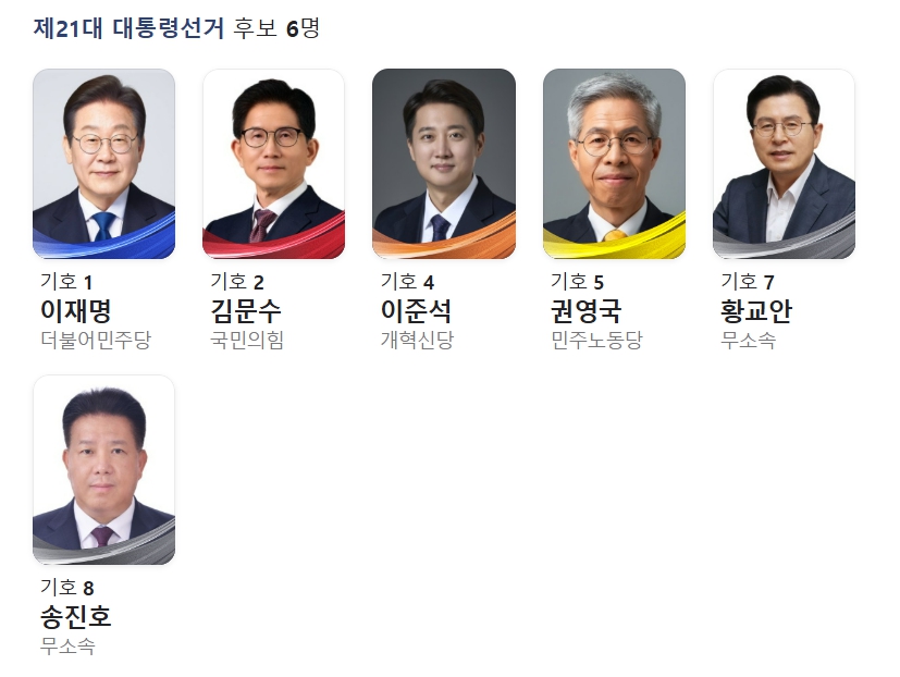 | 국민의힘 | 김문수 | 전 고용노동부 장관, 전 경기도지사 |