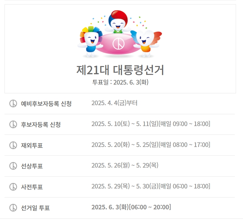 - 중계 채널: KBS1, MBC, SBS 등 지상파 3사 및 중앙선관위 유튜브 생중계